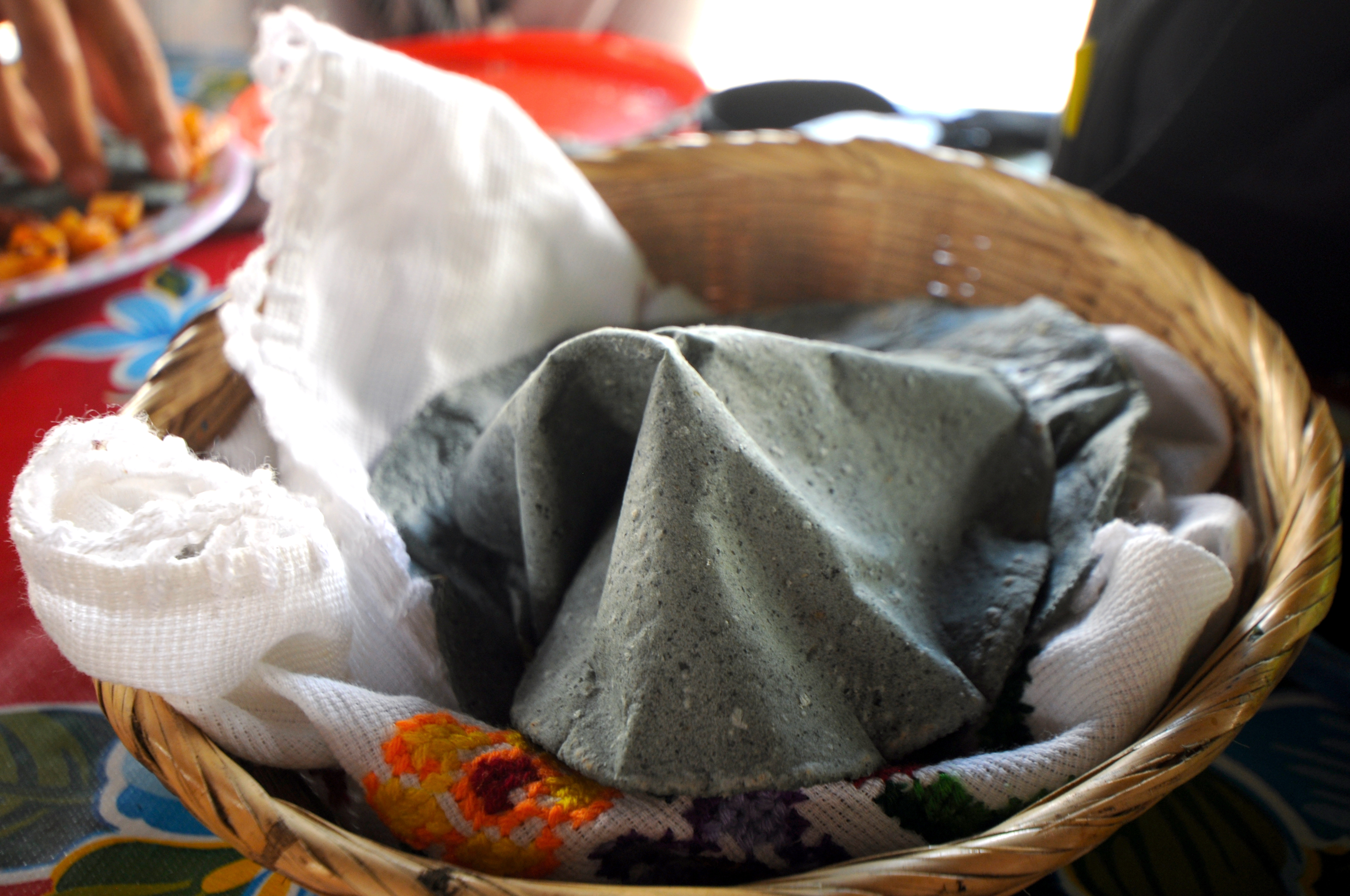 Fresh blue corn tortilla, made from elote azul.