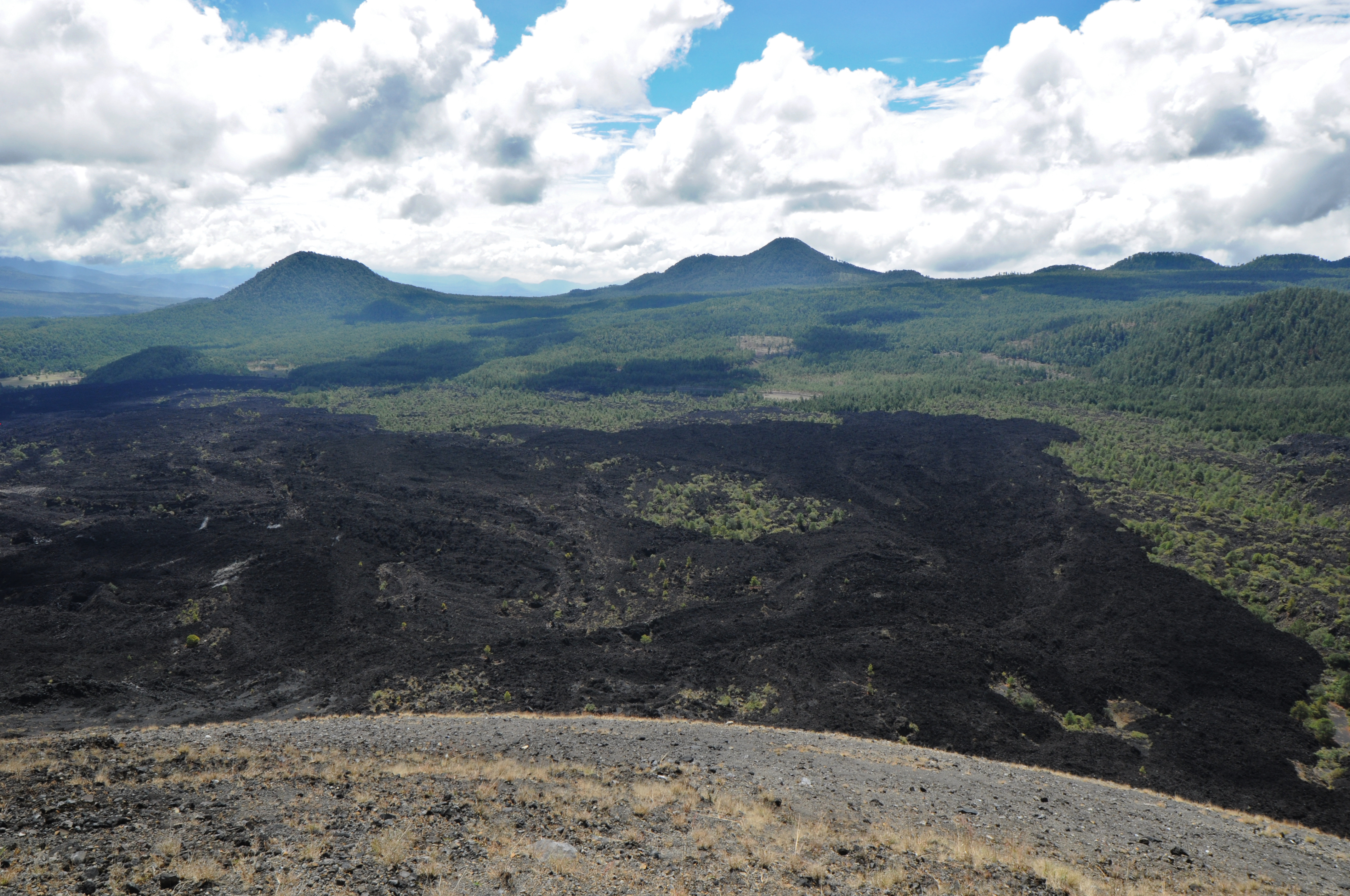 The lava flows from Paracutín are still mostly bare and black and it was obvious to see the lines of where the volcano had touched and where the lava had skirted around hills. It was hard to comprehend that all the thick fields rock that filled the valley—around nine square miles of it—had been shot out and flowed from the small vent that was the summit of Paracutín.
